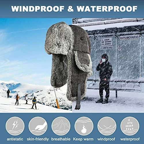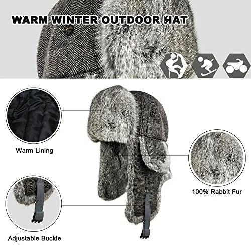 - Comfort and Skin-friendly – Classic aviator hat style design,unisex real rabbit fur aviator trooper hat.High quality rabbit fur and stitching process. The perfect combination of warm and stylish, super warm rabbit fur ear flaps, your best winter hat