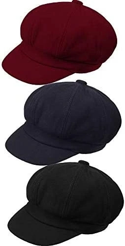8 reviews for Brand new π€© 3 Pieces Newsboy Cap Adjustable Visor Beret Soft 8 Panel Vintage Cabbie Hat Octagonal Cap Navy Blue, Wine Red, Black βοΈ