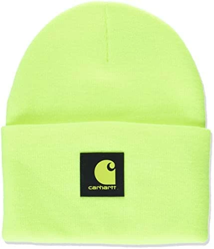 Work through the cold in this Carhartt hat. Not only warm, but comfortable, too. 100% acrylic rib-knit fabric. One size fits all. Fold-up cuff. Carhartt patch sown on front.