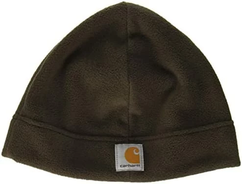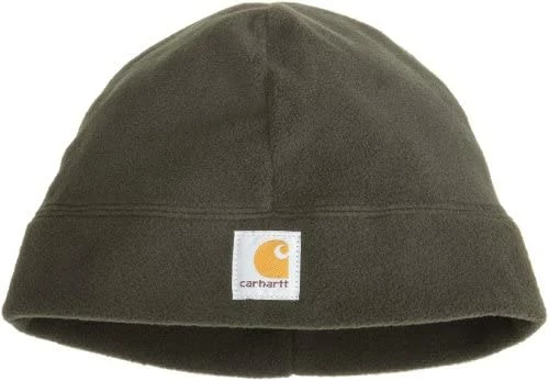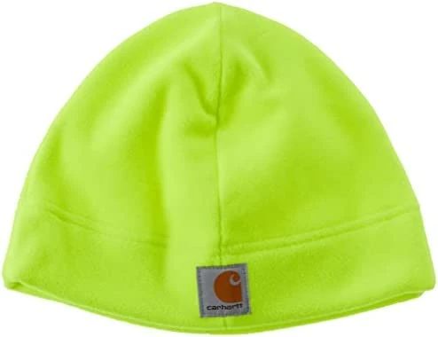 Made of lightweight and durable 100% polyester, our fleece hat works to keep you warm on the coldest of days. It comes in a comfortable, stretchable, one-size-fits-all size and has a Carhartt label sewn on the front.