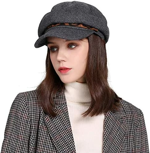 New β¨ Womens Newsboy Cap Wool Winter Hats Baker Boy Hats Adjustable For Ladies Black-5 π