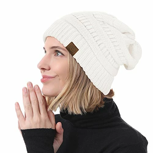8 reviews for Best Pirce 💯 Durio Winter Hats For 👩 Women Cable Knit Beanie Soft 👩 Womens Beanies Thick Winter Hat C White&beige&yellow&pink ✔️