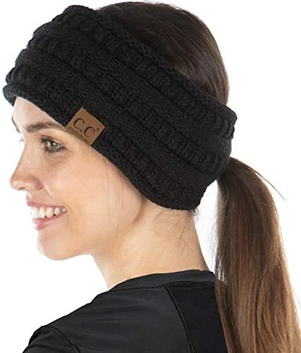 - GREAT LOOK: Upgrade your winter wardrobe by adding this fun new product: ponytail headband. This sporty take on the classic knit headwrap adds ponytail functionality for those who like to keep a low pony. This multi-functional headband can be worn in multiple different ways: hair up in a high ponytail or messy bun, hair low down in a low pony or bun, or hair down with the ponytail hole closed using a button and elastic loop.