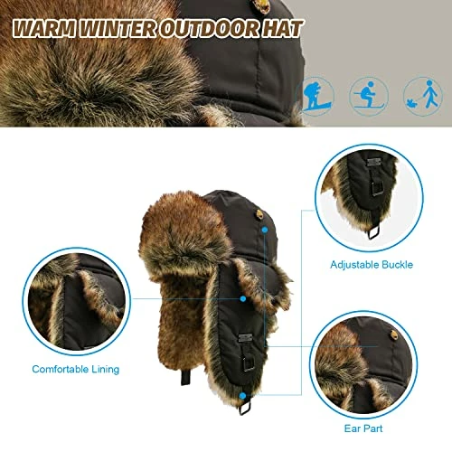 - Designs Comprehensively:The trooper trapper hat can also cover the neck, it can resist the cold air and everything related to winter weather. This ski winter hat is equipped with ear flaps,which can fully protect your head, ears and face. Wearing this russian winter hat,you can feel the warmth when you going out in the cold winter and enjoy the good time of winter.
