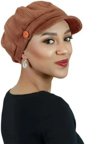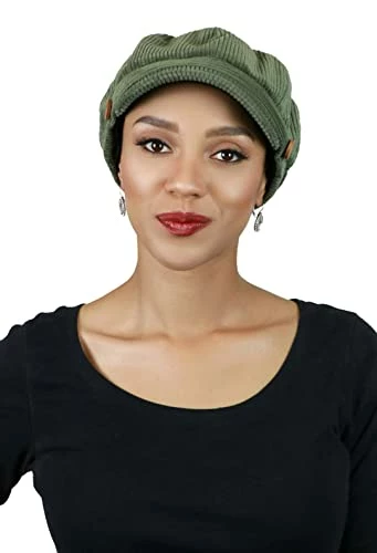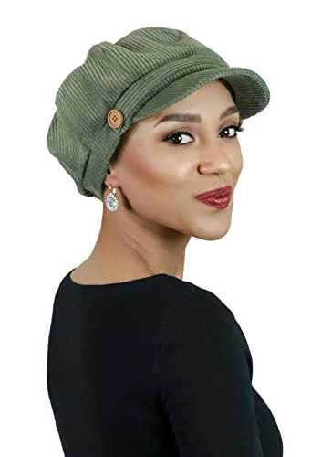- BRIANNA CABBIE NEWSBOY CAP FOR WOMEN OLIVE GREEN CORDUROY is a cute, retro chic, fall and winter hat that’s perfect for cancer patients and women with medical hair loss. A great choice in chemo headwear