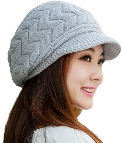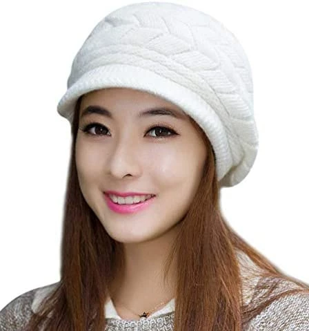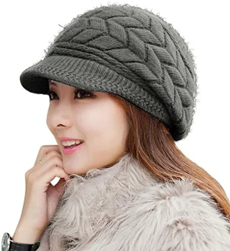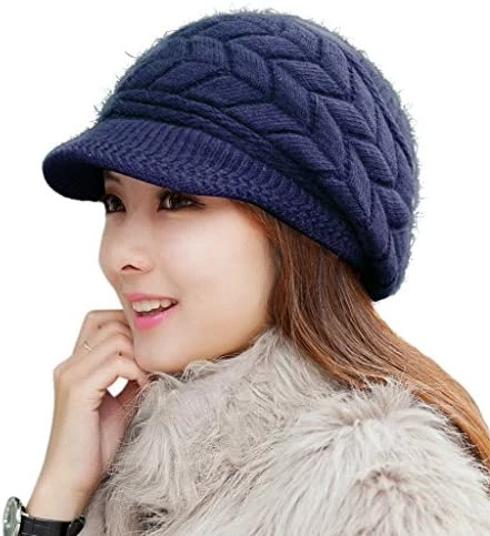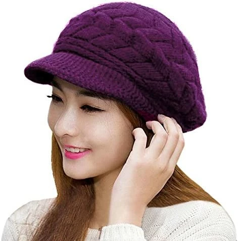 1 of HINDAWI Women Winter Warm Knit Hat Wool Snow Ski Caps With Visor.