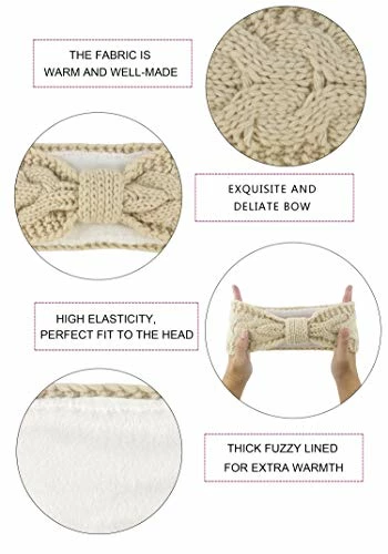 - One Size Fits Most: The well-made cable knitted headband measures 9.05 inches long by 4.3 inches wide, the circumference: 19.7 inches (can be stretched to 27.5 inches). Extra warm and cozy with its lined fuzzy fleece inside. Combines plenty of stretch with a snug fit. This knitted head wrap is suitable for most women and girls.