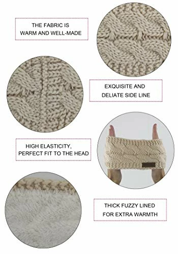 - GREAT FIT: One size fits most. This cable knitted headband measures 8.6 inches long by 4.3 inches wide, the circumference: 19.7 inches (can be stretched to 27.5 inches) and is extra warm and cozy with its lined fuzzy fleece inside. Combines plenty of stretch with a snug fit. This knitted head wrap is suitable for most women and girls.
