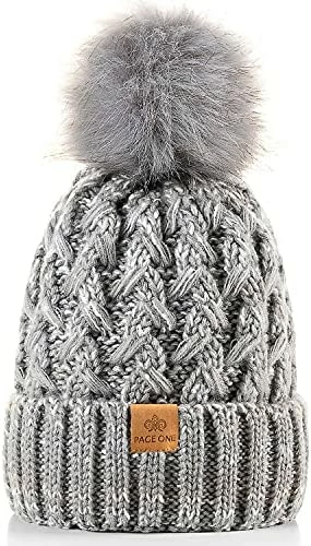 Best Pirce π PAGE ONE π© Womens Winter Ribbed Beanie Crossed Cap Chunky Cable Knit Pompom Soft Warm Hat Mixed Light Grey π―