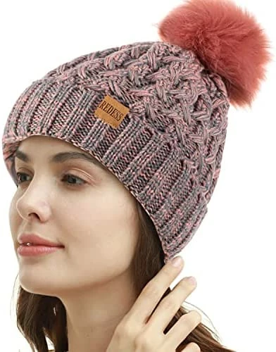 - POM POM HAT :At the top of the cap attached a cute fur ball,The fur is rich and smooth,Make the cap more beautiful and fashion.It can protect your warmth and make you More beautiful,REDESS Hat is a good choice for women.