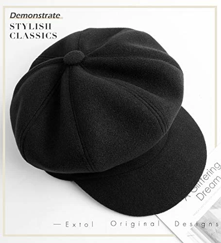 New β¨ Womens Newsboy Cap Wool Winter Hats Baker Boy Hats Adjustable For Ladies Black-5 π
