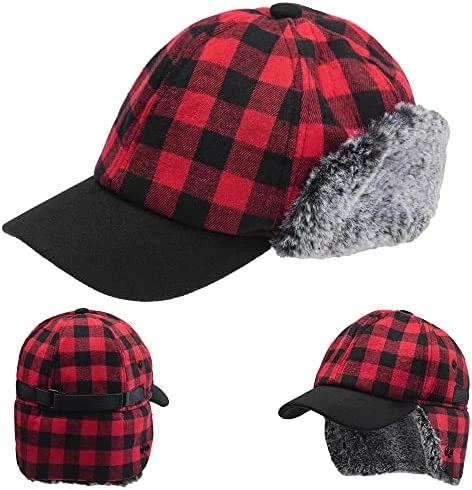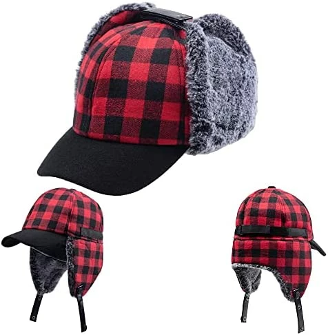 - 1. Made of red and black polyester cotton flannel, with thick cotton inside, stylish and warm.Buffalo Plaid Trapper. High Quality Faux Fur.